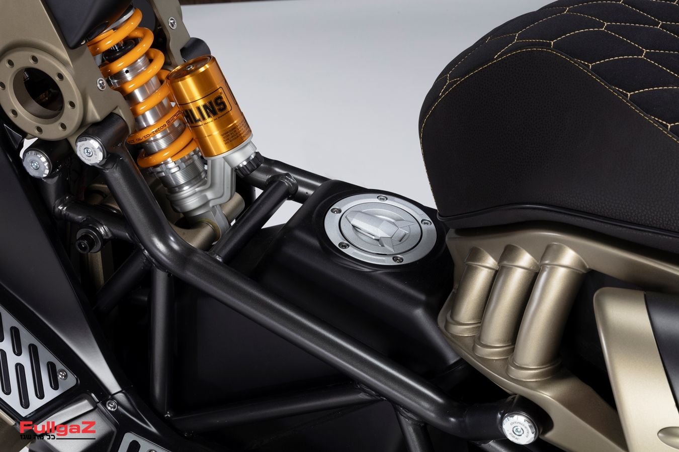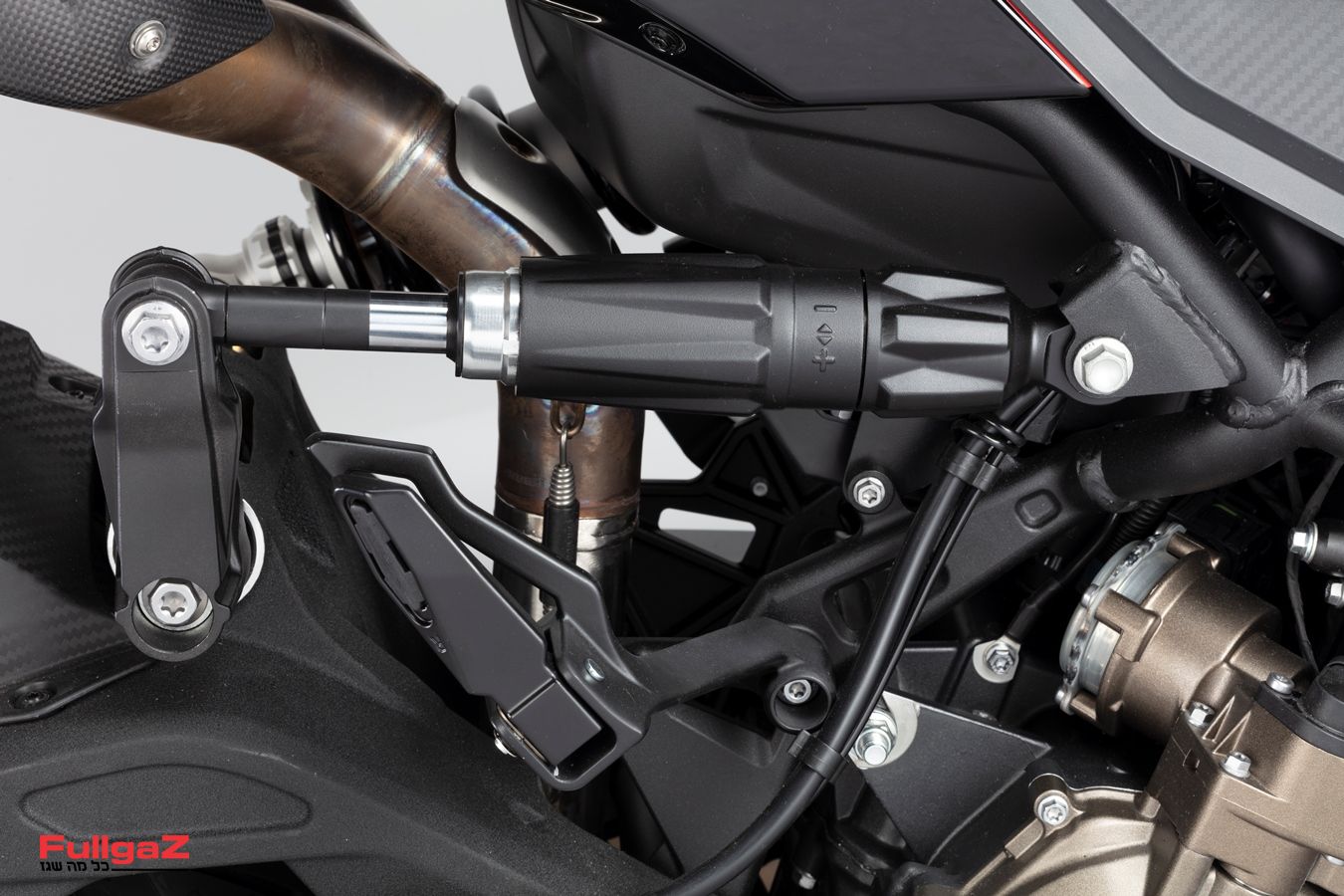 שלדת הצינורות עשויה מפלדה, כאשר המתלים מזכירים מאוד מבנה של קטנוע. מלפנים מתלה חיבור אנכי שמתחבר לשתי זרועות של אוהלינס, ומטרתה להפריד את ההיגוי והספיגה לשני צירים נפרדים. מאחור יש זרוע אחורית 'נגררת' שמחברת את התמסורת לגלגל האחורי. מערכת הבלימה מורכבת משני דיסקים בקוטר 280 מ"מ מלפנים ודיסק יחיד בקוטר 260 מ"מ מאחור. החישוקים בקוטר 13″ עם צמיגים במידות 120/70 ו־150/70. גובה המושב עומד על 790 מ"מ, מיכל הדלק מכיל 12 ליטרים, והמשקל עומד על 151 ק"ג.