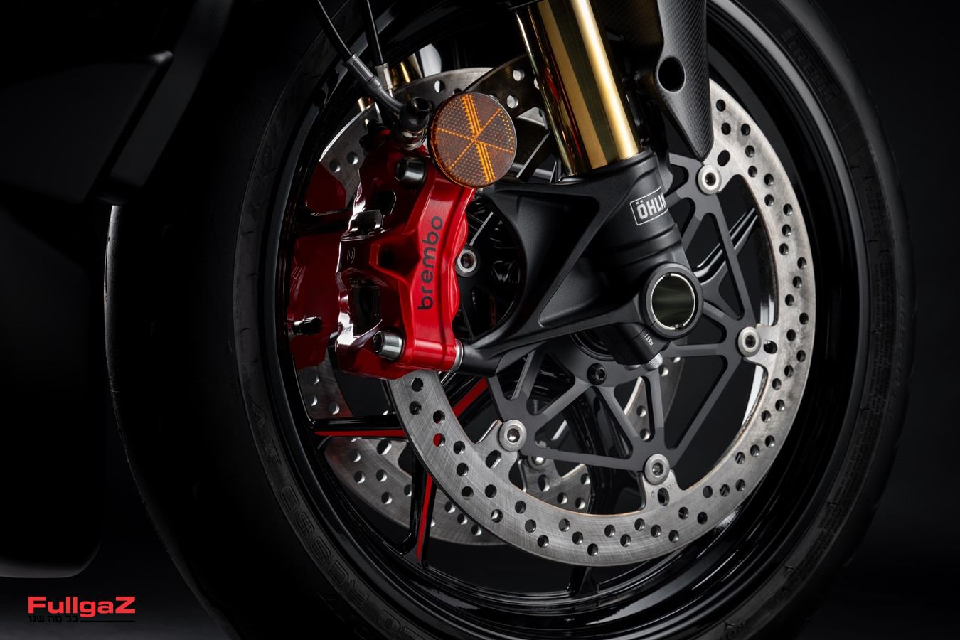 בניגוד לגרסה הרגילה וכמו בפייקס פיק, הזרוע אחורית היא חד־צדית, והשלדה מכוילת אחרת לטובת הספורטיביות. מערכת הבלמים מגיעה ישירות מהפניגאלה V4 S, כשמלפנים יש צמד דיסקים בקוטר 330 מ"מ עם קליפרים רדיאליים של ברמבו מדגם Stylema ומשאבה רדיאלית, ומאחור דיסק בודד בקוטר 265 מ"מ. מערכת ה-ABS המתקדמת היא של בוש, מדגם 10.3ME, והיא כמובן להטיה – המתקדמת ביותר של בוש. הורדת משקל נוספת מגיעה משלדת הזנב העשויה מטיטניום, וכן מחלקי קרבון רבים כמו כנפיים ומגני ידיים. בנוסף, המצבר מסוג ליתיום, וכל אלו מורידים כ־3 ק"ג ביחס לגרסת הפייקס פיק הספורטיבית.