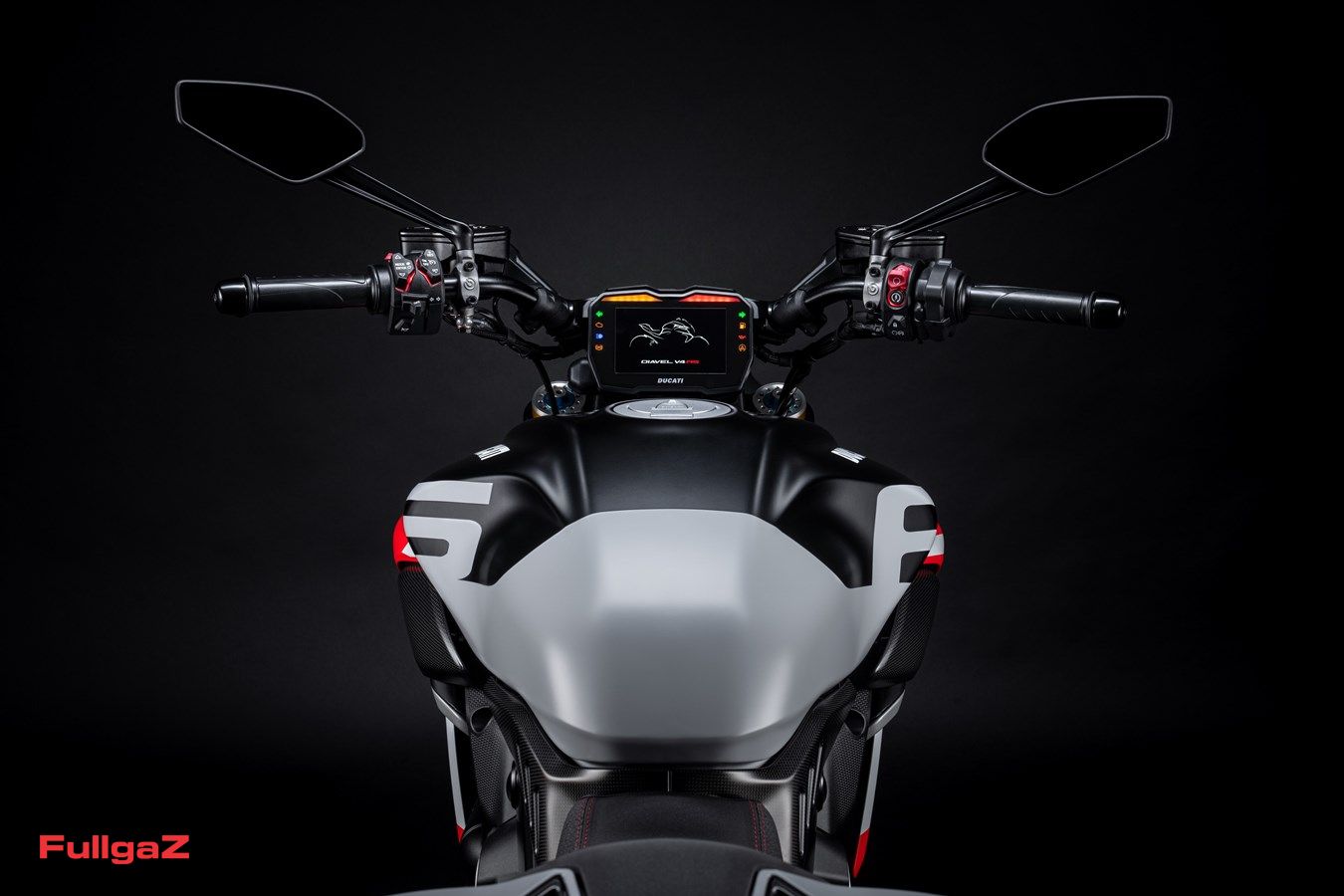 בדוקאטי אוהבים גרסאות קצה לדגמי הקצה, ומציגים את הקרוזר החזק יותר בתולדות החברה ואת הגרסה המעודכנת ביותר של המולטיסטראדה עם המנוע של הפניגאלה. הדיאבל V4 RS מוסיף למנוע הגרנטוריזמו V4 בנפח 1,158 סמ"ק עוד 12 כ"ס ועולה מ־168 כאלה ל־180 כ"ס ב־11,750 סל"ד. זה קורה בזכות מנוע הדזמוסדיצ'י סטרדלה של הפניגאלה V4 הנוכחי. אם צריך איזושהי גאוות יחידה, אז מארק מרקז האיץ עם האופנוע מ־0 ל־100 קמ"ש ב־2.5 שניות. יחסי ההעברה שונו לעומת הגרסה הרגילה, כאשר ההילוך הראשון יכול לעלות עד ל־14,000 סל"ד וכל השאר עד ל־13,500 סל"ד, וזה מסתייע עם הקלאץ' היבש מדגם STM-EVO והדור האחרון של הקוויקשיפטר.