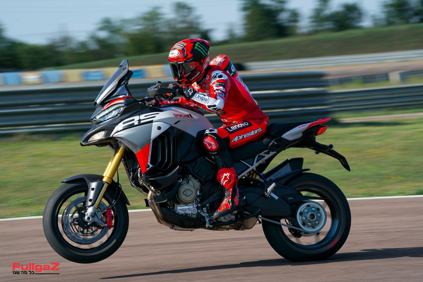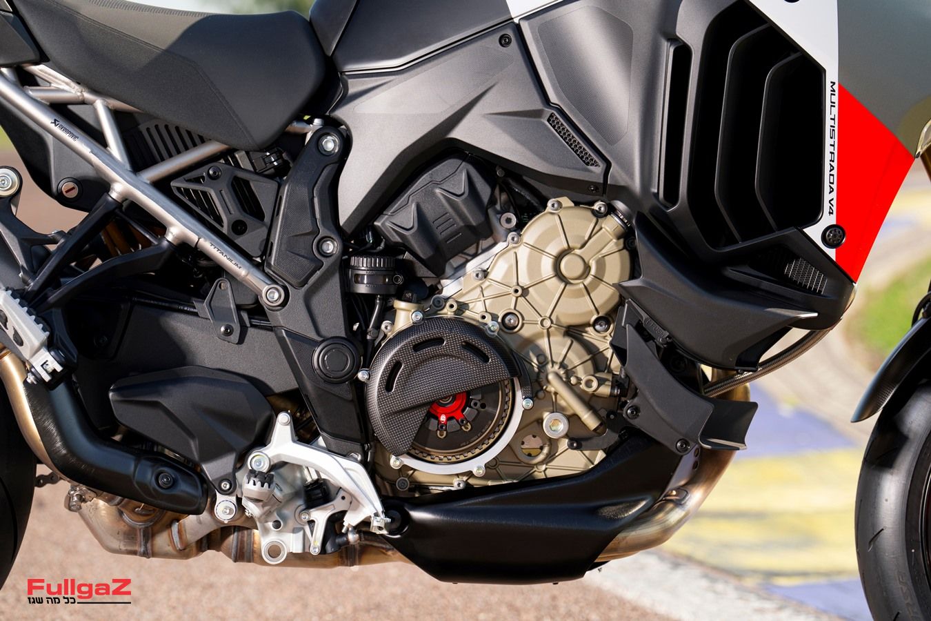 לפני שנתיים הוצגה גרסת ה־RS כגרסת קצה ספורטיבית של המולטיסטראדה V4 עם מנוע הפניגאלה V4, משקל נמוך, אלקטרוניקת סופרבייק ותג מחיר של 305 אלף ש"ח בישראל. בשנה שעברה הוצגה הגרסה המעודכנת של המולטיסטראדה, וכעת נוצר החיבור בין השניים. ההספק כאן ממשיך לעמוד על 180 כ"ס – פחות כמובן מגרסת הכביש־מסלול – וזאת על־מנת לקבל מנוע גמיש יותר עם יותר מומנט בסל"ד נמוך לטובת ייעוד הדגם, כשהקו האדום נמצא ב־13,500 סל"ד.