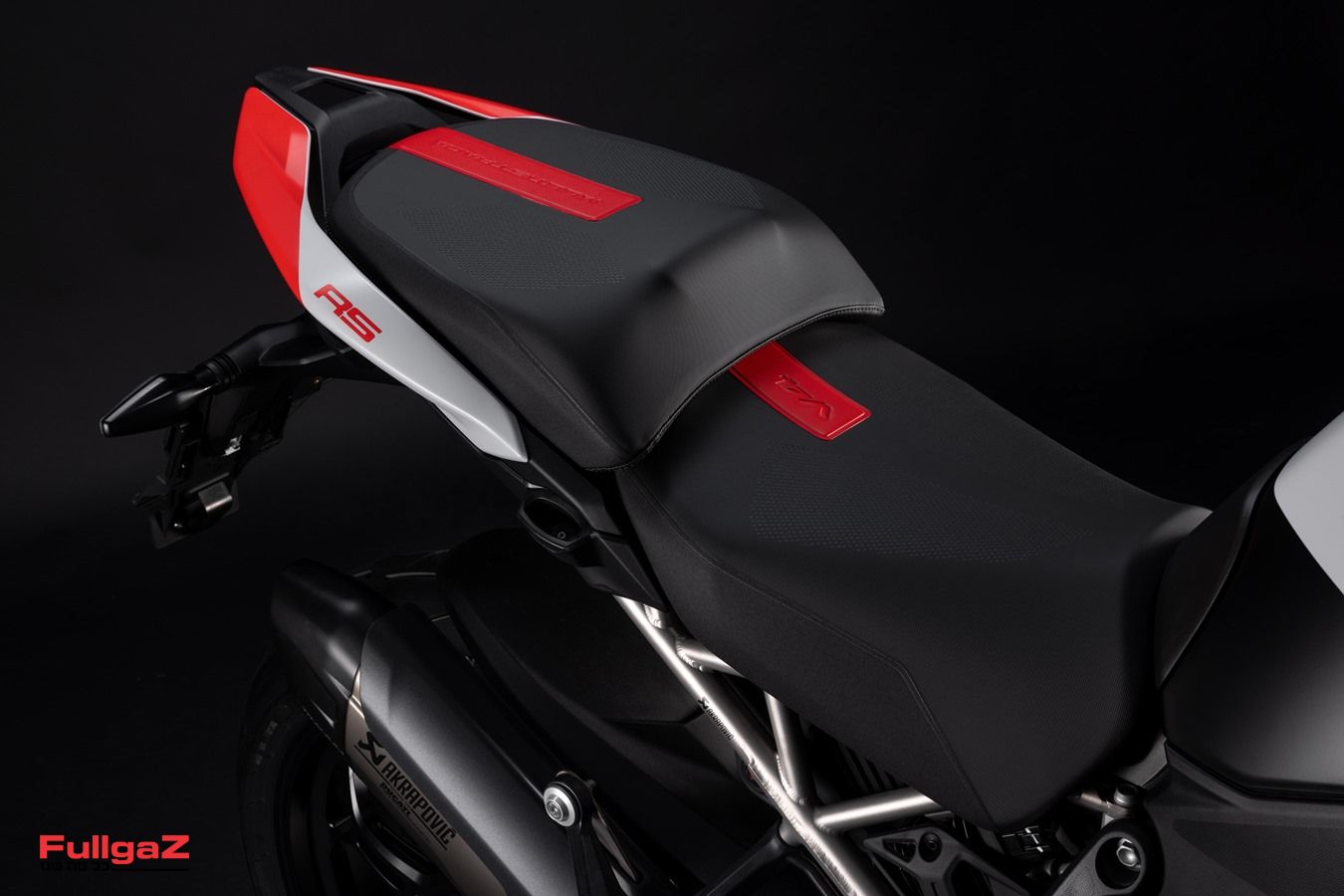 לעומת הגרסה הרגילה, בדוקאטי הפחיתו את המשקל ב־3 ק"ג בעזרת שימוש בקרבון, טיטניום לסופיות האגזוז ומצבר ליתיום־יון קל משקל. המזלג הקדמי של אוהלינס הוא מסוג NIX30 בקוטר 48 מ"מ, ומאחור יש בולם STX46. הבלמים לקוחים ישירות מהסופרבייק של דוקאטי – צמד דיסקים בקוטר 330 מ"מ עם קליפרים רדיאליים של ברמבו מדגם Stylema ועם משאבת בלם רדיאלית – גם היא של ברמבו. כל האלקטרוניקה המטורפת של הגרסה הרגילה ממשיכה גם לכאן עם כיולים מתאימים. לגרסת ה־RS מושב יחיד וגרפיקה מיוחדת.
