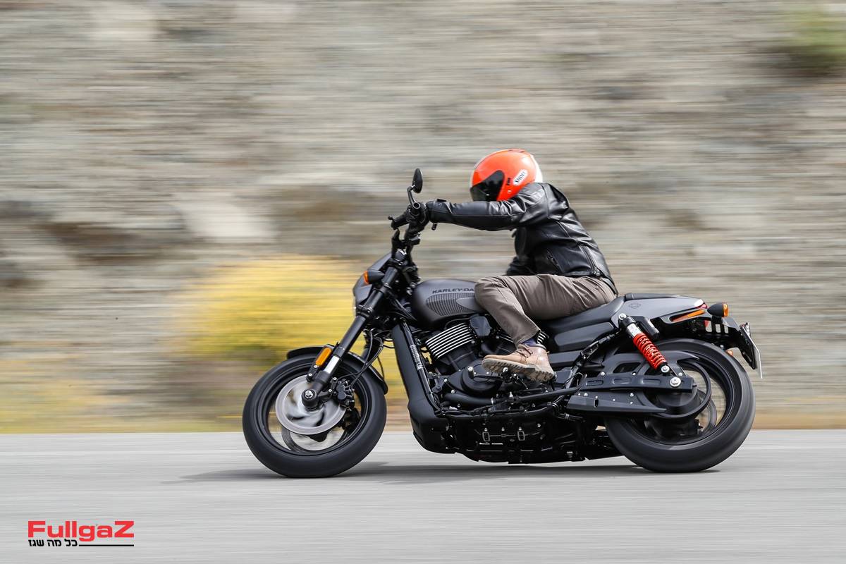 כמתחייב מהשם 'רוד', הוא לא רק צבוע בצבעי מט כהים, גם תנוחת הרכיבה מזכירה במשהו את הווי-רוד הגדול, עם מושב נמוך וכידון רחב ושטוח במיוחד ששולח את הידיים הרחק לפנים ויוצר כיפוף הארליסטי בגב. לרגע חלמנו על קסדת חצי ועל צמיג אחורי ברוחב 300 מ"מ, אבל הסתפקנו ב-160 הצנועים של הסטריט רוד ובקסדת ה-SHOEI הכתומה שמתאימה בול לצבעים של הארלי.