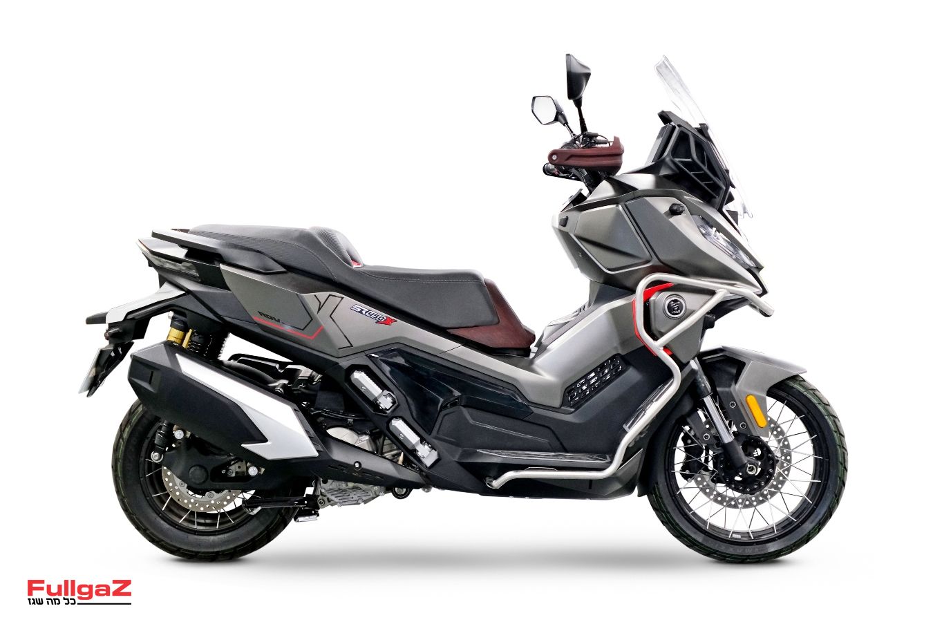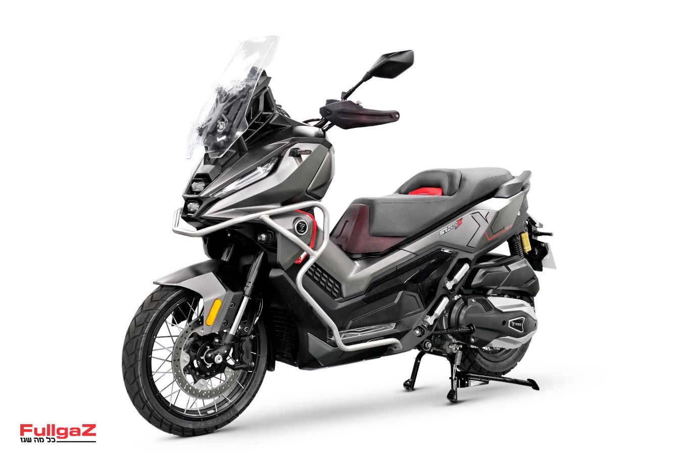 ה־SR450X נכנס אל תוך סגמנט פורח ותחרותי, שמשלב אל תוך קטנועי כביש מוטיבים של קטנועי שטח – אורבן־אדוונצ'ר. ה־SR החדש מגיע עם מנוע טווין מקבילי מקורר נוזל בנפח של 398 סמ"ק – כלומר מנוע חדש לגמרי לעומת ה־SR4 המוכר. ההספק המוצהר עומד על 43.5 כ"ס והמומנט על 4.4 קג"מ. שלדת הפלדה נתמכת בבולמי קאיאבה מתכווננים, חישוקי השפיצים מגיעים טיובלס (ללא פנימית) בקוטר 17″ מלפנים ו־14″ מאחור, עם צמיגי מקסיס.