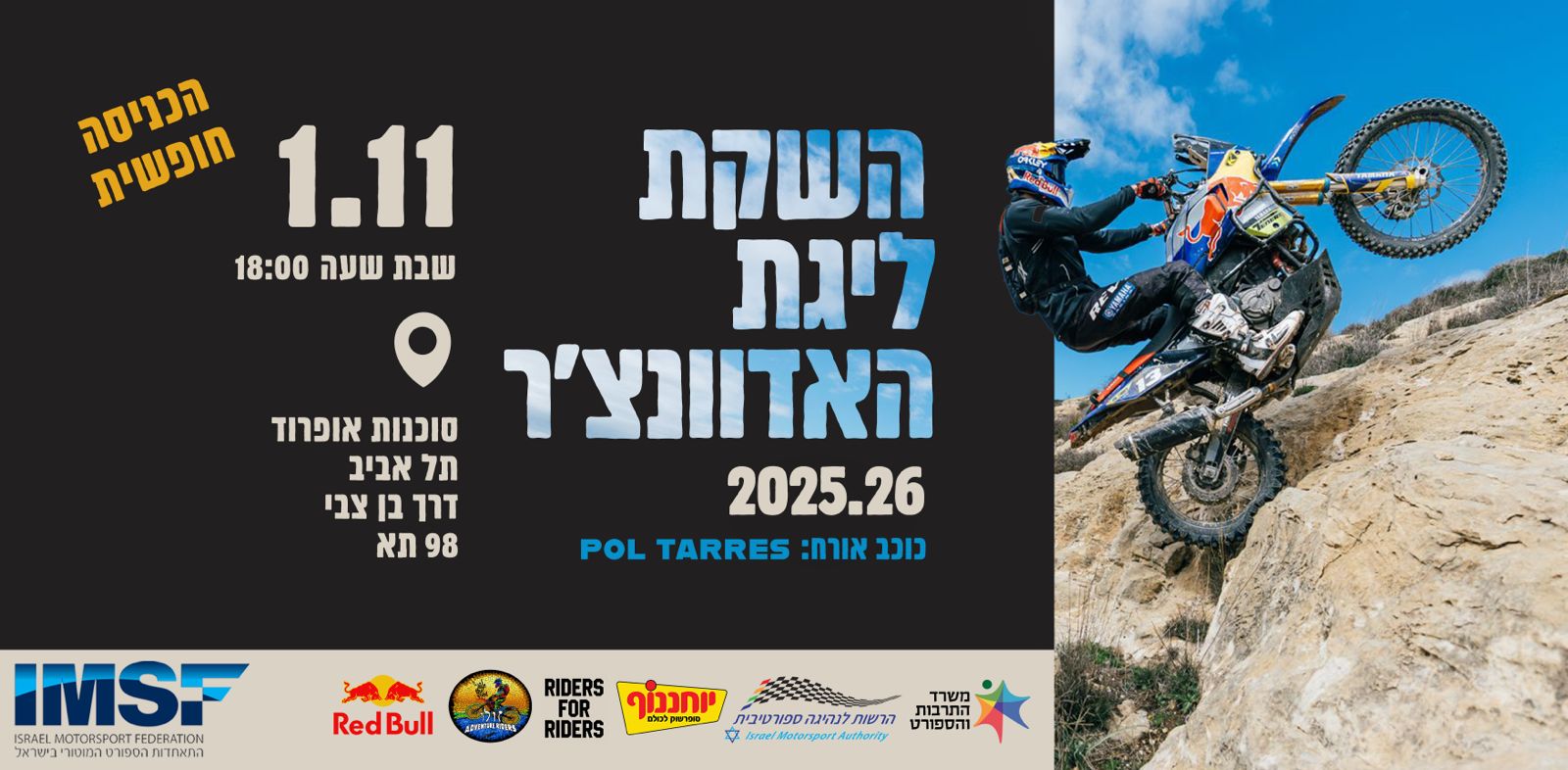 רוכב האקסטרים פול טארס, המוכר בזכות החיבור ההדוק שלו לימאהה טנרה 700, מגיע לישראל לסבב נוסף של סדרת אירועים והדרכות בהפקה של Riders for Riders; טארס גם יהיה שותף לערב ההשקה על ליגת האדוונצ'ר החדשה והרשמית.
