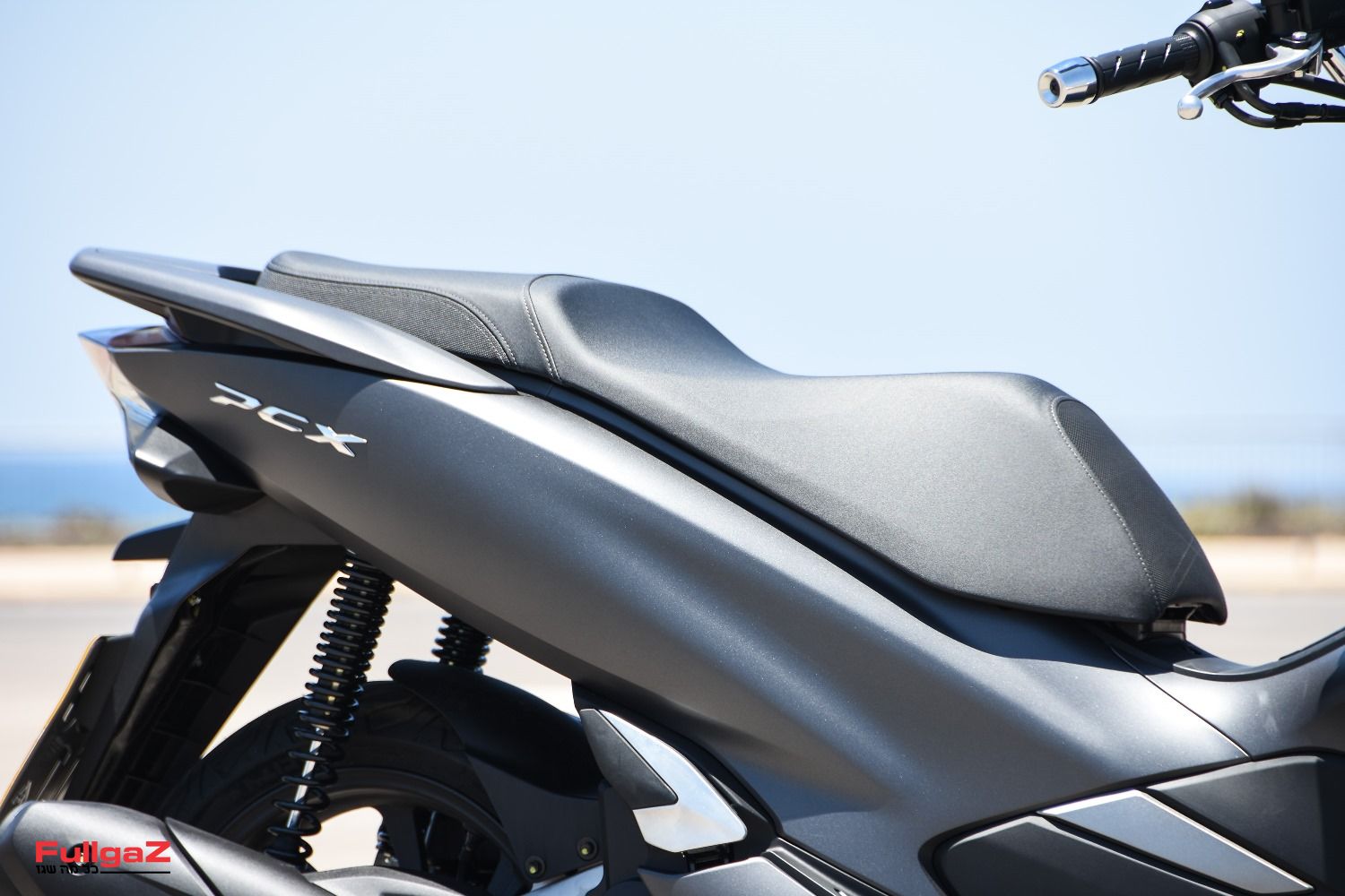 עם משקל רטוב של 130 ק"ג ובסיס גלגלים של 1,315 מ"מ ה-PCX מרגיש קטן, אבל הוא ממש לא צפוף. המושב מעט נמוך ויש מקום לרגליים ואפשרות למתוח אותן לפנים, הכידון רחב ומספיק גבוה, והמושב נראה רחב – אם כי חסרה לנו מעט תמיכה בחלקו הקדמי והצר. לוח השעונים הנמוך נראה מצוין, אך התצוגה ההפוכה (כיתוב לבן על רקע שחור) מעט פחות קריאה באור יום. בלילה זה נראה מעולה. כל הפנסים הם כעת פנסי LED.