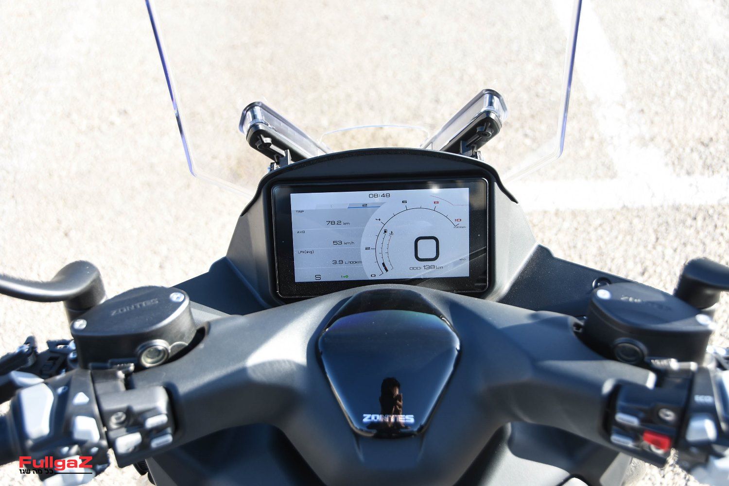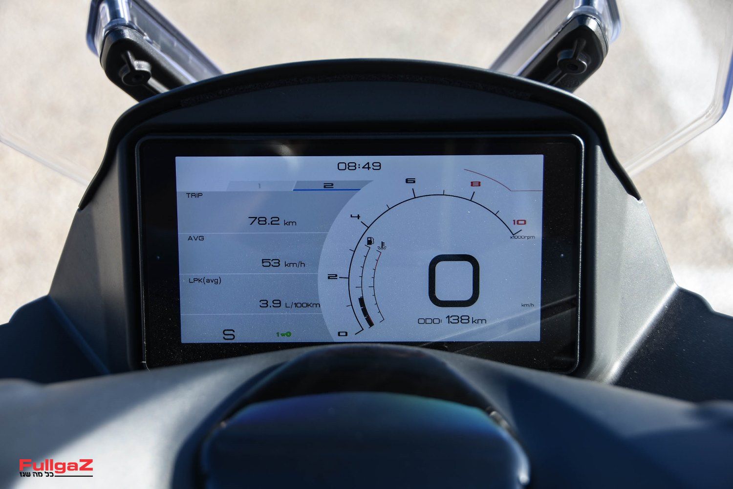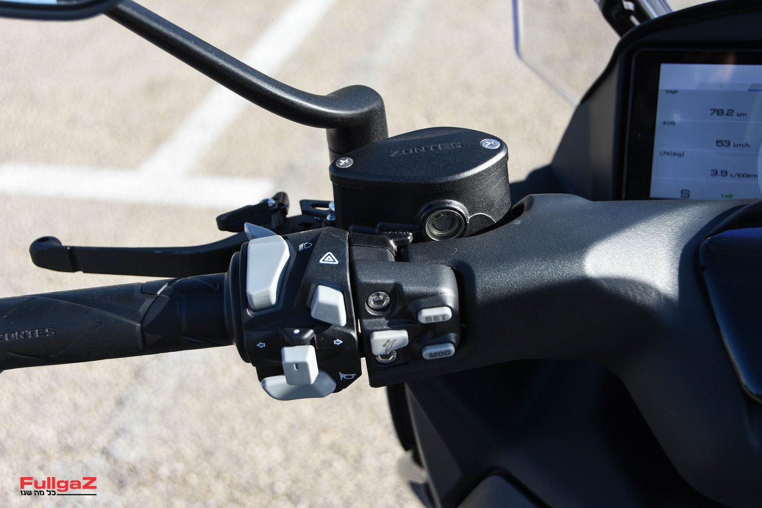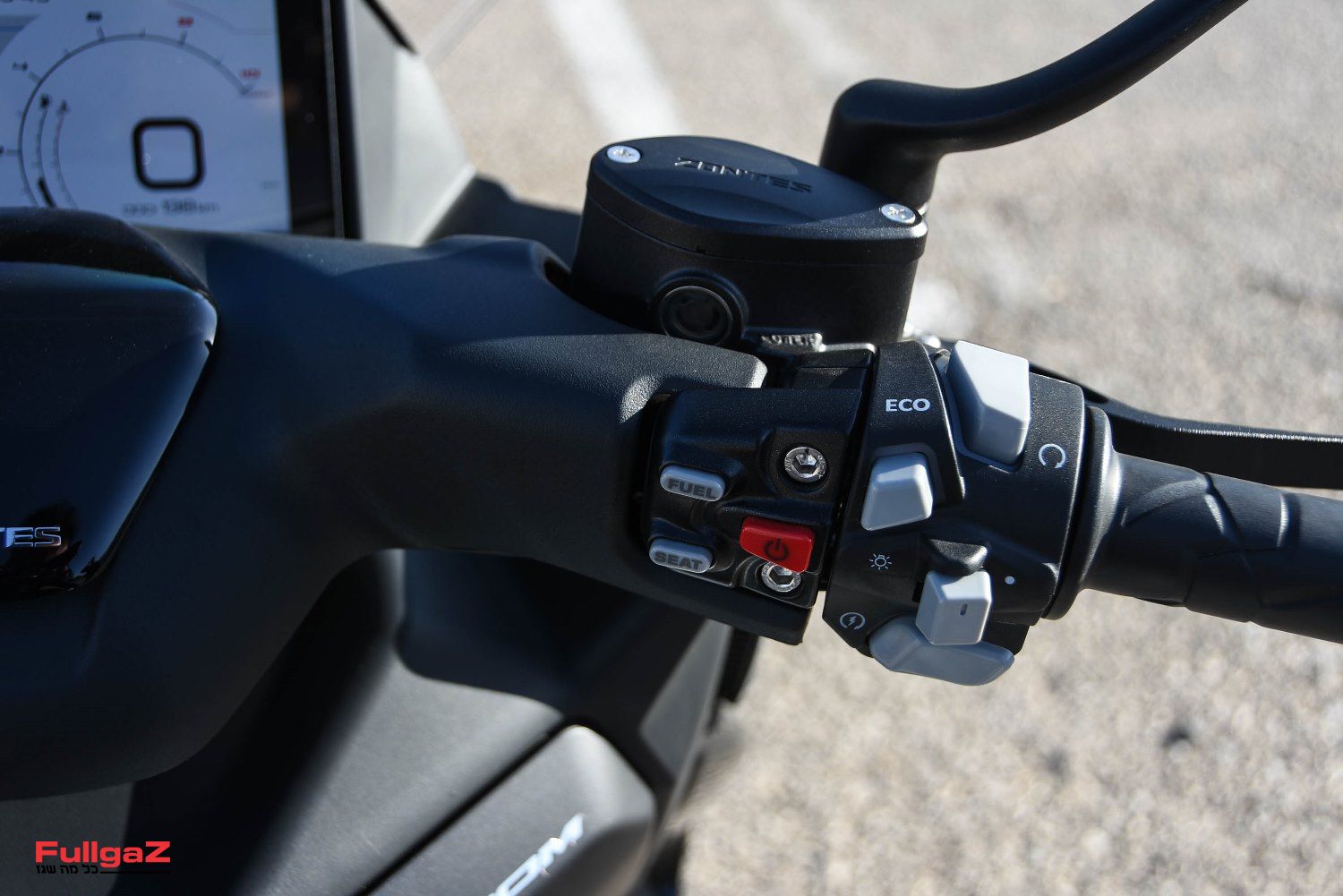 פרט למתג המשקף ולמתגים הרגילים, נמצא על הכידון גם מתגים לשליטה על תצוגת ה־TFT ושליטה מלאה בתפריטים. ניתן לבחור בין מספר מצבי תצוגה, רמות תאורה ומצב יום או לילה. אפשר גם לבחור בבחירה אוטומטית לכל אלו, וגילינו שהתצוגה יודעת היטב מתי להגביר את הבהירות ונראית ברורה וקלה לקריאה בכל מצב. המתגים, כמו הפלסטיקה וכמו כל הקטנוע, איכותיים ומיישרים קו בסטנדרט מערבי לחלוטין. הקטנוע נותן תחושה של מוצר ברמה גבוהה כמו שאנו רגילים מקטנועים אירופאיים או אפילו יפניים.