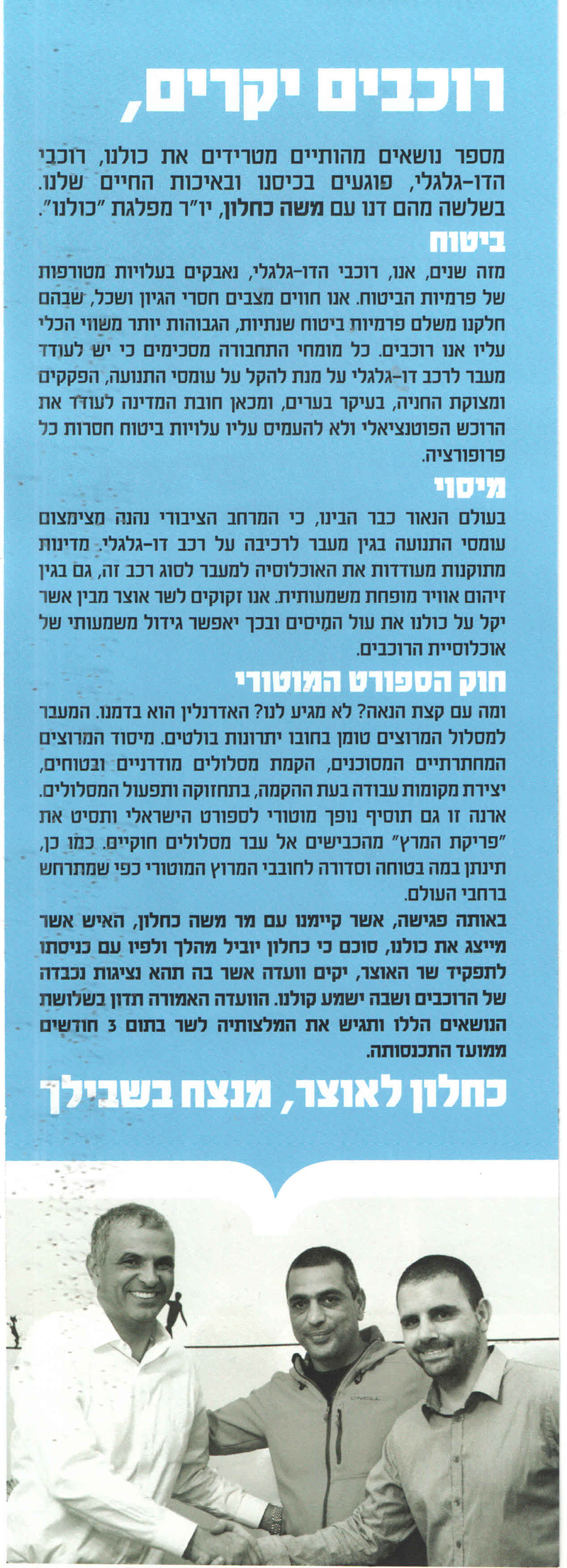 שון בן יקר- הוא יושב ראש העמותה לספורט מוטרי, ואם כל הכבוד, זה לא מתוקף תפקידו לדאוג לביטוח, אלה ליצירת מסגרת והקמת מסלול בטיחותי בארץ.