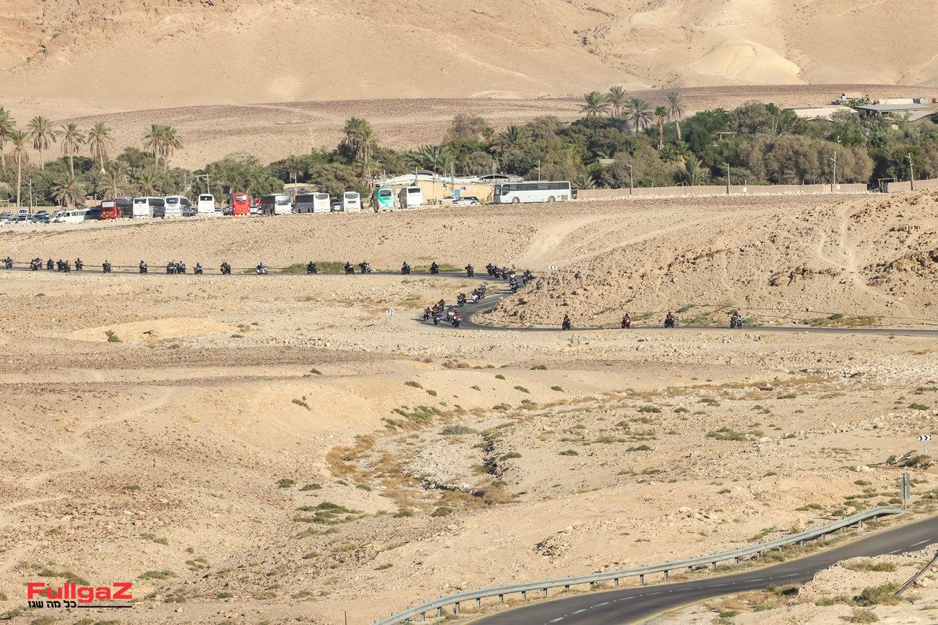 משם המשיך הטיול בירידות סדום־ערד לעבר עין בוקק – שם חיכו החום, בתי המלון, עצירת שתייה ותדלוק האופנועים לקראת המשך הדרך. עם שקיעת השמש וכניסת החושך התקדמה הרכיבה צפונה לאורך ים המלח, עד אבנת – שם המתינה לרוכבים ארוחת ערב מרשימה סביב שולחנות ארוכים, באווירה שהשלימה את החוויה.