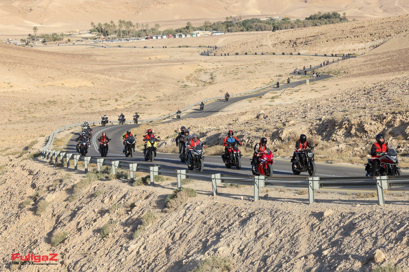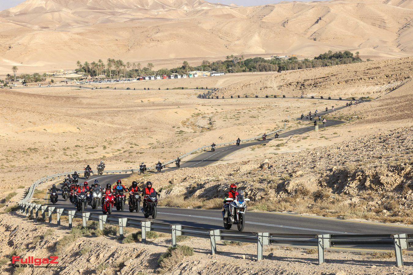 בשעות הצהריים של יום חמישי התכנסו ביער המלאכים הסמוך לקריית גת כ־130 אופנועים מדגמי הונדה השונים. את פני הרוכבים קיבלו נציגי הונדה בישראל, לצד כיבוד קל ושתייה באווירת סוף קיץ חגיגית. לאחר תדריך קצר ומסודר יצאה השיירה ליעד הראשון – כפר הנוקדים, שבין ערד למצדה, לעצירת התרעננות, ארוחה קלה ושיחה קולחת עם חברי המועדון.