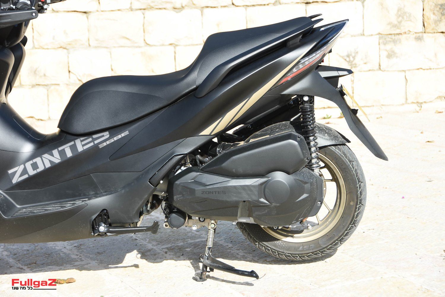 זונטס 368E הוא קטנוע מנהלים המבוסס על אותו מנוע של קטנוע הקרוסאובר של זונטס, ה־368G, אך כאן מדובר בדגם מנהלתי מובהק יותר: נמוך, רחב ומפנק, עם דגש על נוחות, מיגון רוח ואבזור. ה־368E מונע על־ידי מנוע חד־צילינדרי בנפח 368 סמ"ק, מוזרק ומקורר נוזל, עם נתוני הספק מהגבוהים ביותר בקטגוריה בישראל. יש לו שלדת צינורות פלדה, גלגל "15 קדמי ו־"14 אחורי, דיסק בודד מלפנים ומאחור עם מערכת ABS ומתלים קונבנציונליים. תיבת ההילוכים אוטומטית מסוג וראיטור, המשקל הרטוב עומד על 188 ק"ג, ונפח מיכל הדלק 17 ליטרים מכובדים. הוא מגיע עם רשימת אבזור ארוכה: מפתח קרבה, משקף מתכונן חשמלי, מצלמות DVR מלפנים ומאחור, צג TFT בגדול 6.75 אינטש עם קישוריות לאפליקציית זונטס, מערכת TMPS לניטור לחץ האוויר בצמיגים, תאורת LED מלאה, חימום לידיות, ואפילו בלם חניה. הוא מגיע בצבעי לבן, אפור ושחור מט.