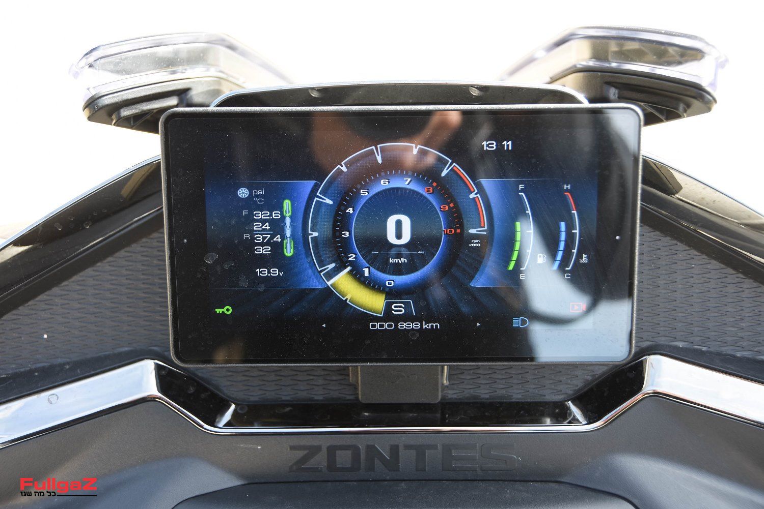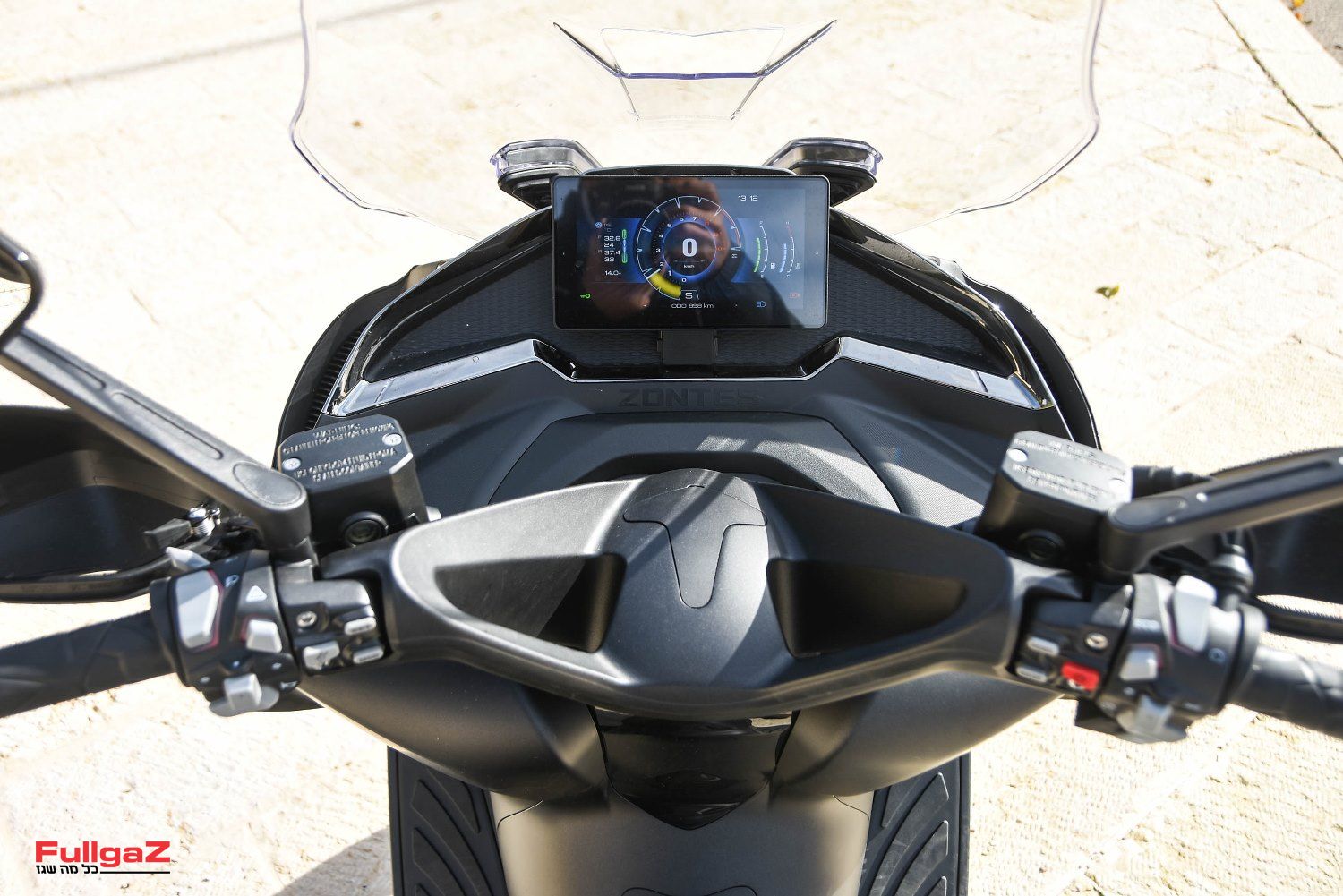מסך ה־TFT גדול וברור בכל תנאי תאורה, אך חלק מהנתונים המוצגים בו קטנים מעט, והעיניים הזקנות שלנו היו מעדיפות שימוש בפונט יותר גדול על חשבון מעט מהגרפיקות המגניבות. למסך הצבעוני יש חמש תצוגות שונות לבחירה ואפשרות שיקוף לטלפון. הניווט בתפריטים מתבצע באמצעות שני כפתורים על הכידון והוא מעט מבלבל בתחילה. יש שקע USB על הכידון, ממש מתחת למסך, שמאפשר הטענה נוחה לטלפון שיחובר לכידון. יש עוד שני שקעים בתא הכפפות השמאלי, USB רגיל ו־USB-C.